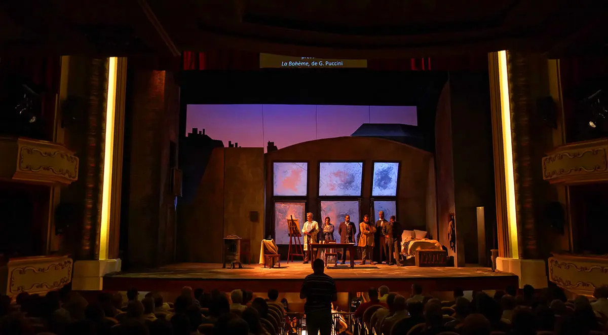 Escenógrafo de la ópera La Bohème de G. Puccini. Teatro Jovellanos de Gijón. International Ópera Studio. Asturias. España. Director de escena: Sandra Martinovic. Estreno, septiembre 2015.